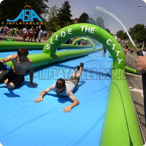 カスタムアダルトクレイジー1000フィートスリップNスライドメーカー、インフレータブルスライド大人のための都市